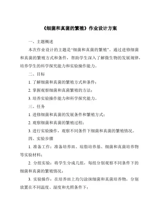 《细菌和真菌的繁殖》作业设计方案一、主题概述本次作业设计的主题是“细菌和真菌的繁殖”。