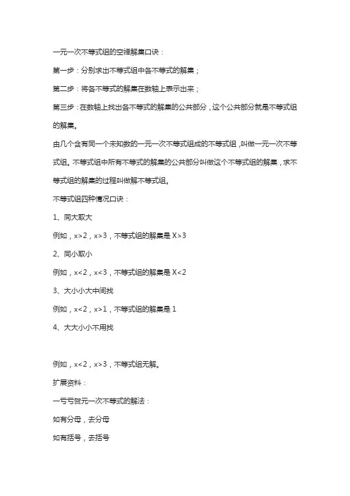 一元一次不等式组的空禅解集口诀: