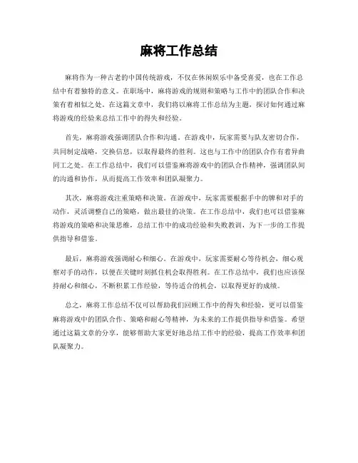 在工作总结中,我们可以借鉴麻将游戏中的团队合作精神,强调团队间的沟通和协作,从而提高工作效率和团队凝聚力。