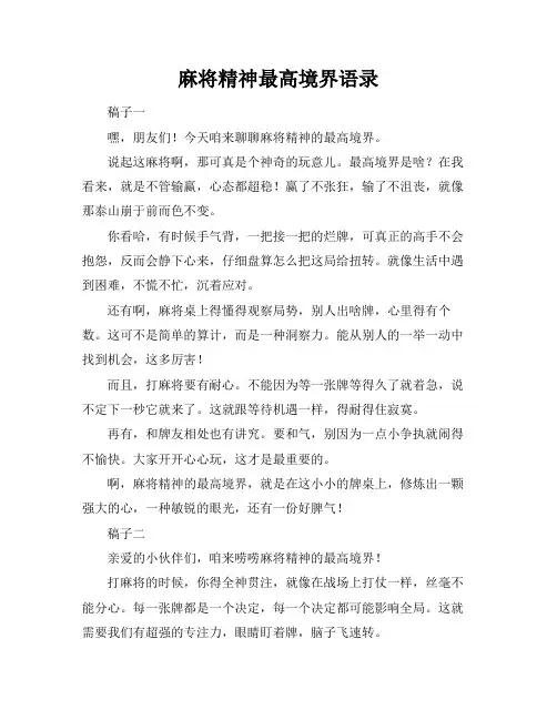 以下是一些关于麻将的精神语录,希望能够给大家带来一些启示和思考。