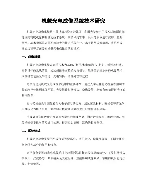 机载光电成像系统技术研究机载光电成像系统是一种以机载设备为载体,利用光学和电子技术对地面目标进行高精度成像和测量的技术系统。