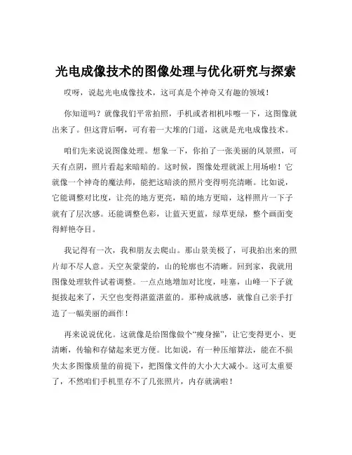 一、光电成像技术的基本原理光电成像技术是指通过光、电的转换,将物体的图像转化为电子信号并进行处理显示的技术。