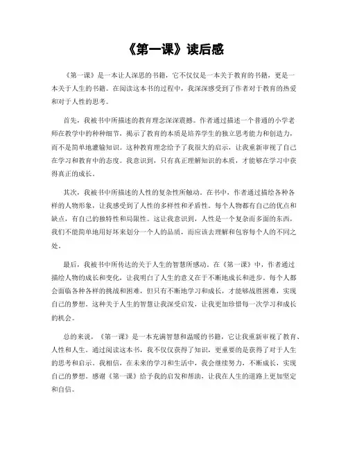 《第一课》读后感《第一课》是一本让人深思的书籍,它不仅仅是一本关于教育的书籍,更是一本关于人生的书籍。