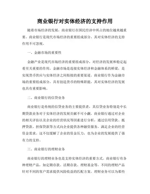 商业银行对实体经济的支持作用随着市场经济的发展,商业银行在国民经济中所占的地位越来越重要。