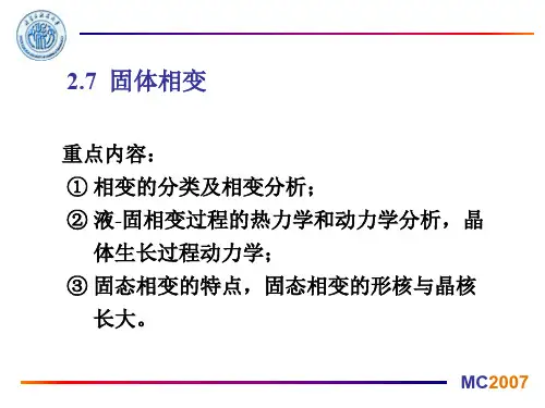 一、固态相变的基本概念1. 固态相变是指物质在固态状态下由一种晶体结构转变为另一种晶体结构的过程。