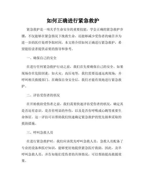 三、急救用品当遇到紧急措施时,我们应该确保随身携带基本的急救用品,以便立刻处理紧急情况。