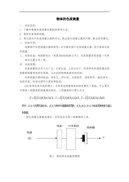 物体颜色测量仪器原理介绍颜色是一个心理物理量。