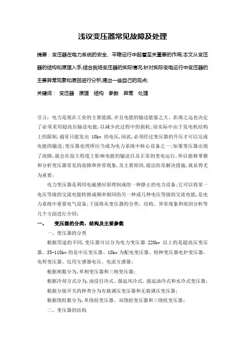 变压器着火原因变压器是电力系统中常见的重要设备,其作用是将高压电能转换为低压电能,以满足不同电压等级的用电需求。