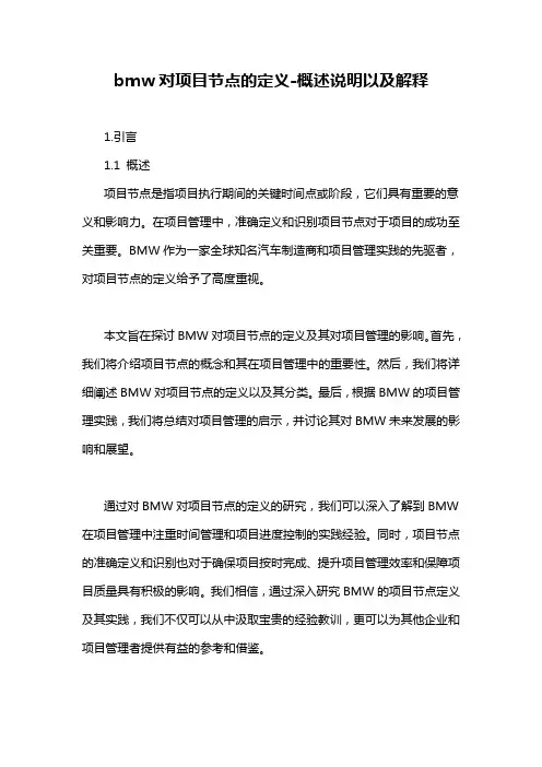 bmw对项目节点的定义-概述说明以及解释1.引言1.1 概述项目节点是指项目执行期间的关键时间点或阶段,它们具有重要的意义和影响力。