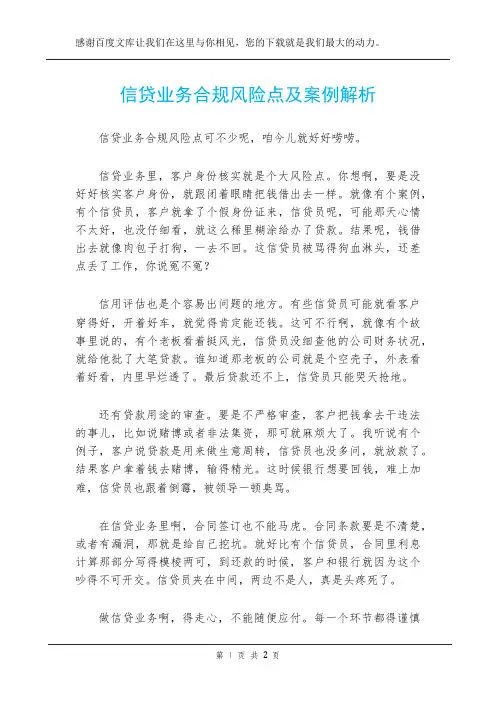 三、案例启示1.信贷业务中的风险无处不在,银行需要注重风险管理。