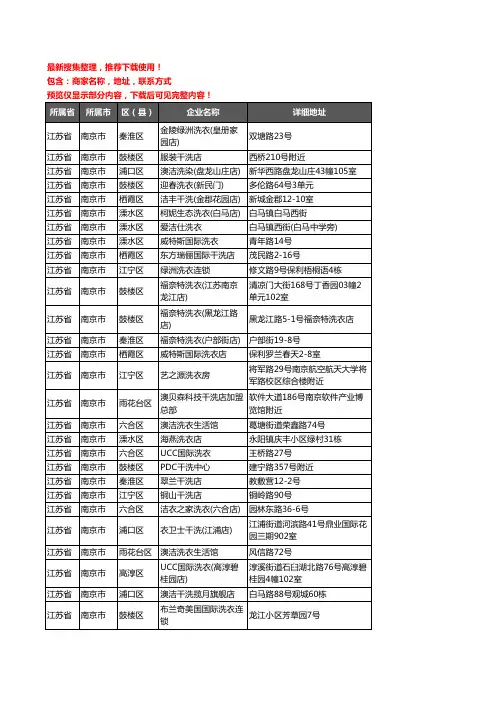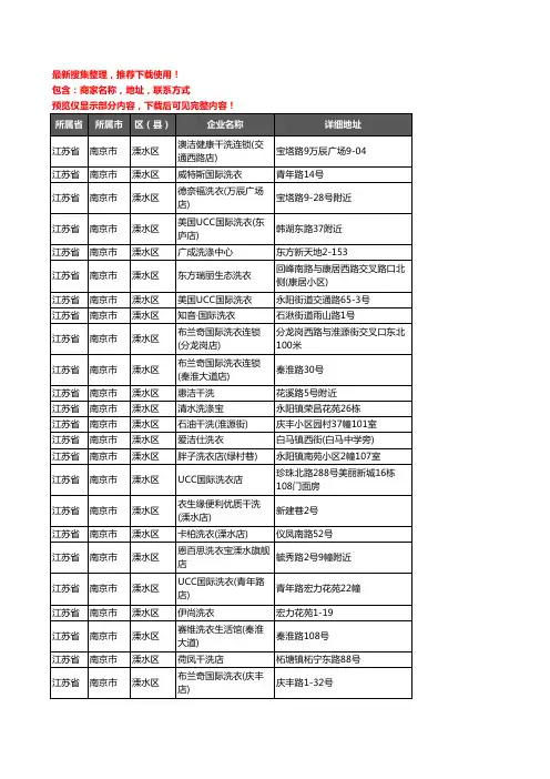 新版江苏省南京市江宁区洗衣店企业公司商家户名录单联系方式地址大全197家