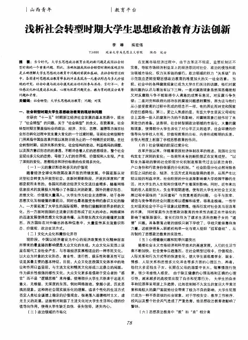 社会转型时期思想政治教育的困局与出路随着社会的不断发展和变革,中国正处于一个转型时期,经济、政治、社会结构等多方面都在经历着深刻的变革。