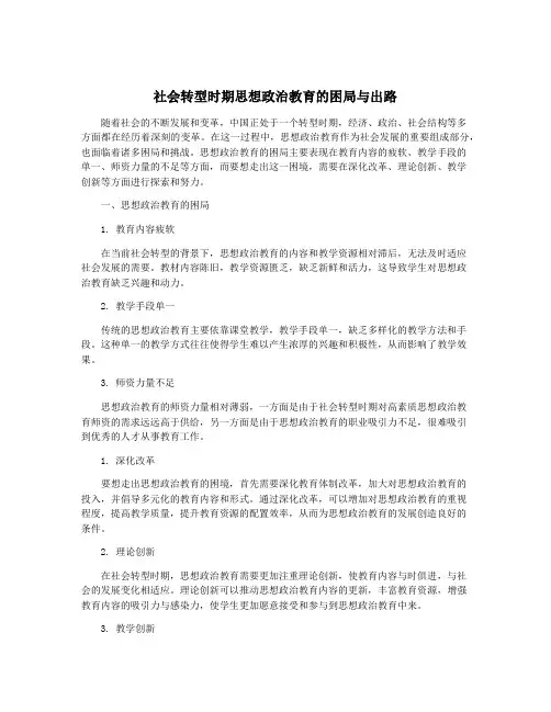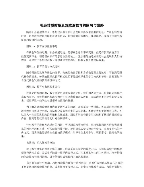 二、出路1. 推进思想政治教育改革在社会转型时期,思想政治教育需要不断改革和创新,以适应时代的发展。