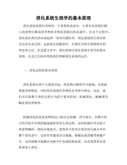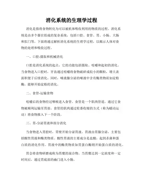 消化系统的生理学过程消化是指将食物转化为可以被机体吸收利用的物质的过程。