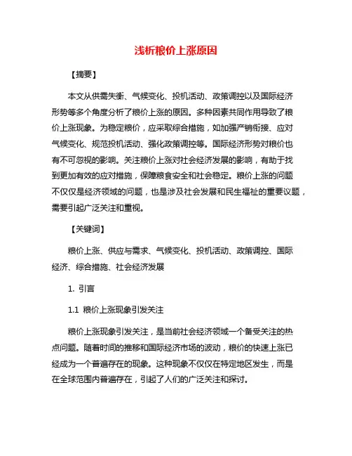 四、原材料价格上涨原因分析1. 供需关系(1)供应端:受环保政策、产能过剩等因素影响,部分原材料供应量减少,导致价格上涨。