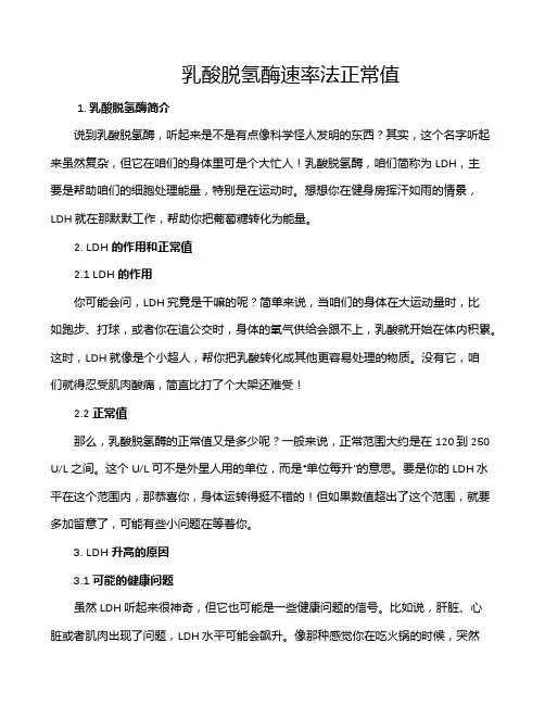 2. LDH的作用和正常值2.1 LDH的作用你可能会问,LDH究竟是干嘛的呢?简单来说,当咱们的身体在大运动量时,比如跑步、打球,或者你在追公交时,身体的氧气供给会跟不上,乳酸就开始在体内积累。