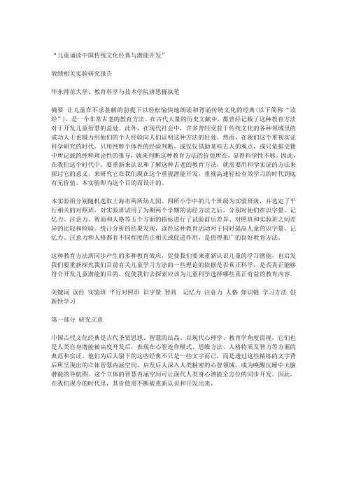 儿童诵读中国传统文化经典与潜能开发