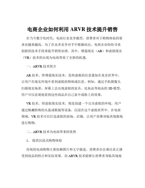 电商企业如何利用ARVR技术提升销售在当今数字化时代,电商行业竞争激烈,消费者对于购物体验的要求也越来越高。