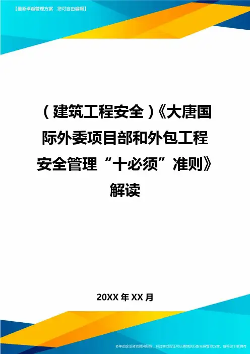 (建筑工程安全)《大唐国际外委项目部和外包工程安全管理“十必须”准则》解读附件2:《大唐国际外委项目部和外包工程安全管理“十必须”准则》解读近年来,大唐国际严格执行国家有关安全生产的法律法规,认真贯彻落实国家安监总局、国家电监会、中国大唐集团公司有关安全生产工作的要求,有效控制了安全风险。