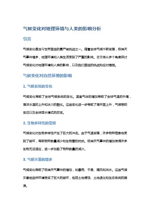 气候变化对环境和人类的影响引言气候变化是当今世界面临的最大挑战之一。