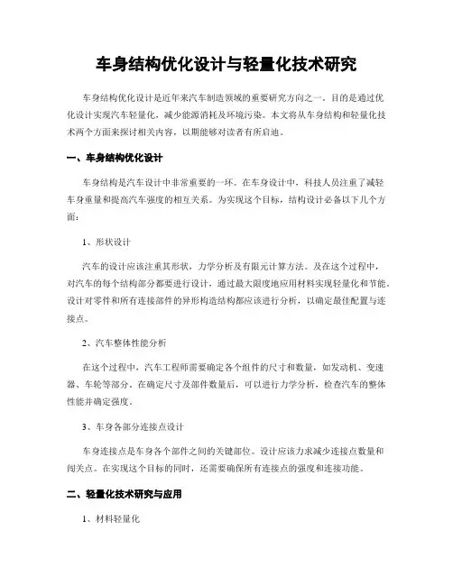 3.车身结构设计的优化除了材料的选择,车身结构的优化设计也是轻量化设计的重要方面。