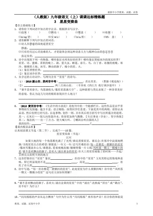 (人教版)九年级语文(上)课课达标精练题3 星星变奏曲【语言基础练习】1、请你给下列词语中加点的字注音,根据拼音写汉字。