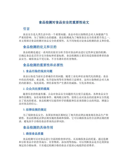 食品检测对食品安全的重要性论文引言食品安全是人类生活中的一个重要问题,食品中的污染物质会对人体健康产生严重的影响。