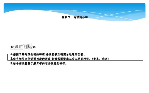 4. 地球公转和季节的关系地球公转是导致季节变化的主要原因。