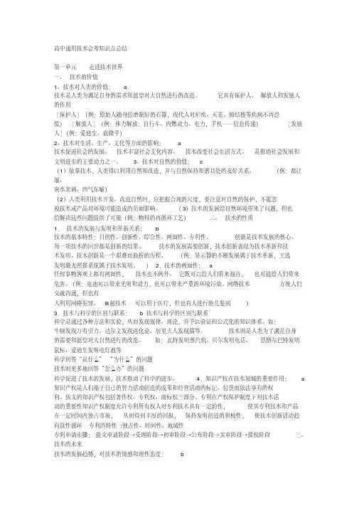 高中(通用技术)会考复习总结第一单元走进技术世界技术是人类为满足自身的需求和愿望对大自然进行的改造。