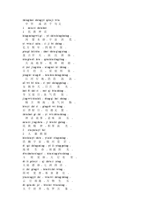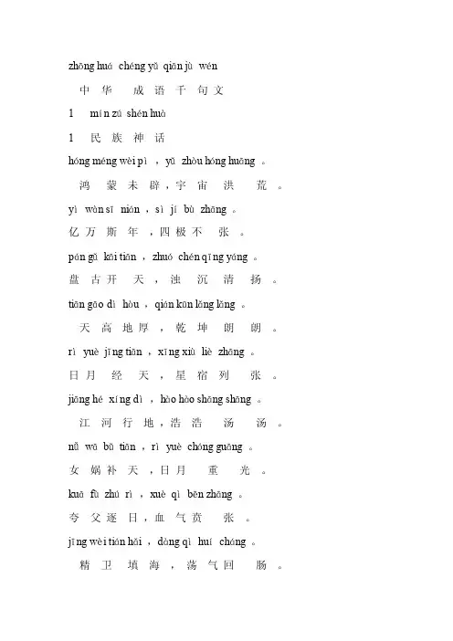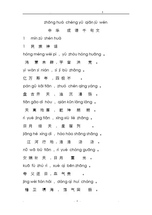 《中华成语千句文》全文1.民族神话鸿蒙未辟,宇宙洪荒。