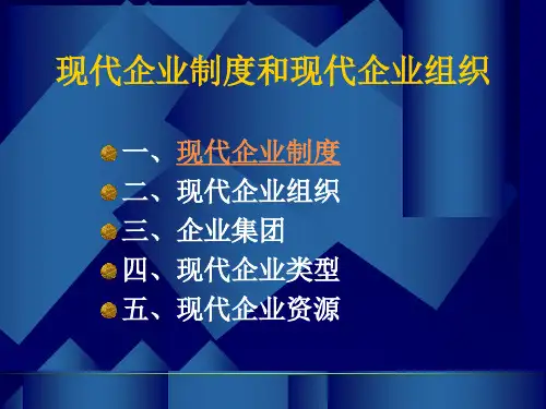 现代企业制度和现代企业组织现代企业是指在现代经济制度下,采用现代科技和现代管理方法进行生产和管理的企业。
