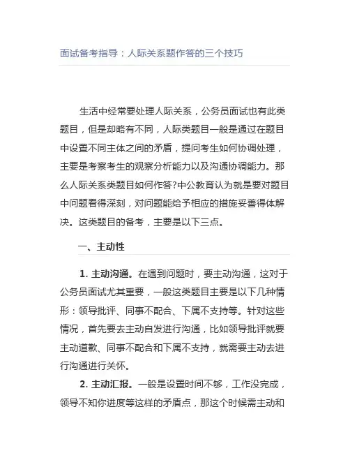 事业单位面试人际关系类题目应对技巧事业单位面试人际关系类题目应对技巧在事业单位的面试中,涉及工作中人际关系的处理题目不少。