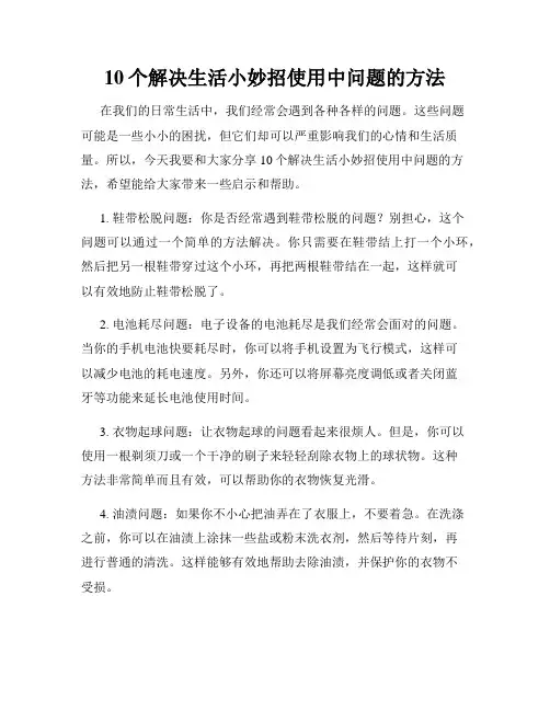 10个解决生活小妙招使用中问题的方法在我们的日常生活中,我们经常会遇到各种各样的问题。