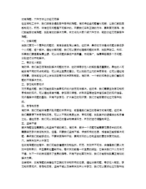 攻克难题:六种方法让你迎刃而解在生活和工作中,我们经常会遇到各种各样的难题。