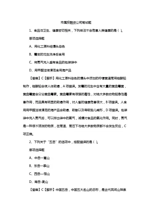市属投融资公司笔试题1、食品与卫生、健康密切相关,下列做法不会危害人类健康的是()。