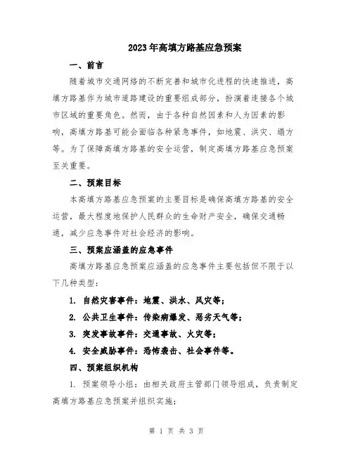 以上仅为一份高填方路基应急预案的基本要点,具体的预案内容和措施应根据实际情况进行制定和调整。