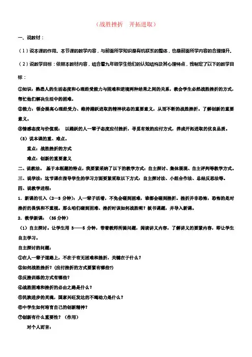 (战胜挫折开拓进取)一、说教材:(1)说本课的作用。