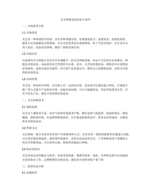 2. 收益预测灵芝产品具有较高的利润率,根据市场调研数据及产品价格,初步预测本项目的年收益为100万元。