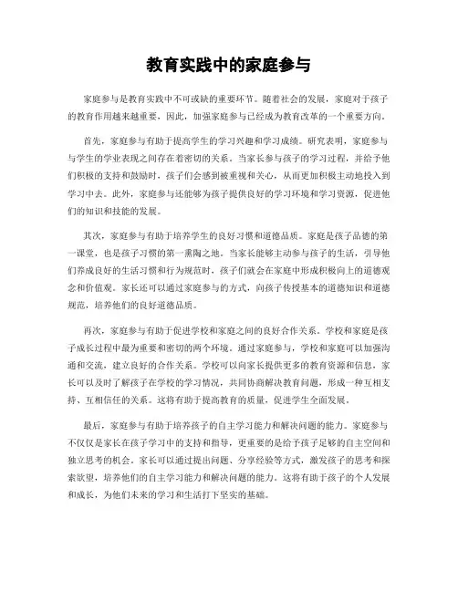 小学生基础教育实施中的父母参与随着社会的发展,家长对于孩子教育的关注和参与程度也越来越高。