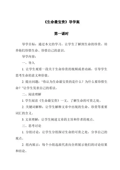 三、导学方法本节课的导学方法主要包括:1. 问题导入:通过提出一些问题,引导学生思考品德与法治的关系;2. 概念解释:通过解释品德、法治和法律等相关概念,帮助学生理解;3. 分组讨论:将学生分成小组,让他们就品德对法治和法治对品德的影响进行讨论;4. 实例分析:以具体的案例或情境为例,引导学生应用法律常识和法治理念进行分析和判断;5. 规则制定:让学生一起制定一些校园规则或家庭规矩,培养他们的法治意识。