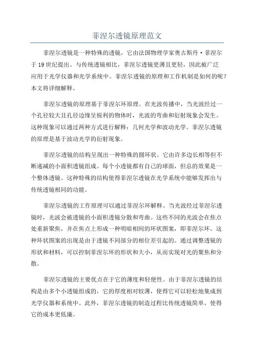 菲涅尔透镜原理范文菲涅尔透镜是一种特殊的透镜,它由法国物理学家奥古斯丹·菲涅尔于19世纪提出。