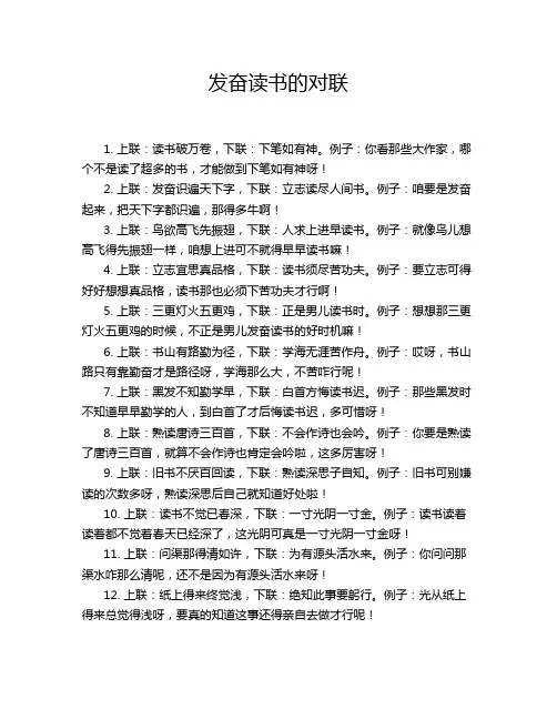 发奋读书的对联1. 上联:读书破万卷,下联:下笔如有神。