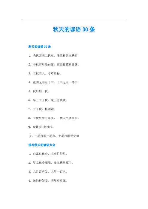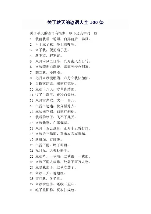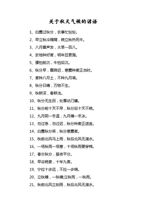 (不干路)15、雷打秋,冬半收16、雷打秋,冬半收17、立了秋,把扇丢18、立了秋,把扇丢。