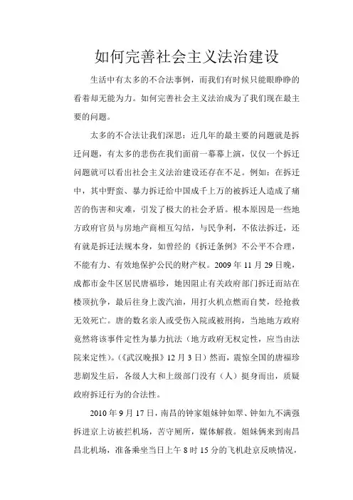 如何完善社会主义法治建设生活中有太多的不合法事例,而我们有时候只能眼睁睁的看着却无能为力。