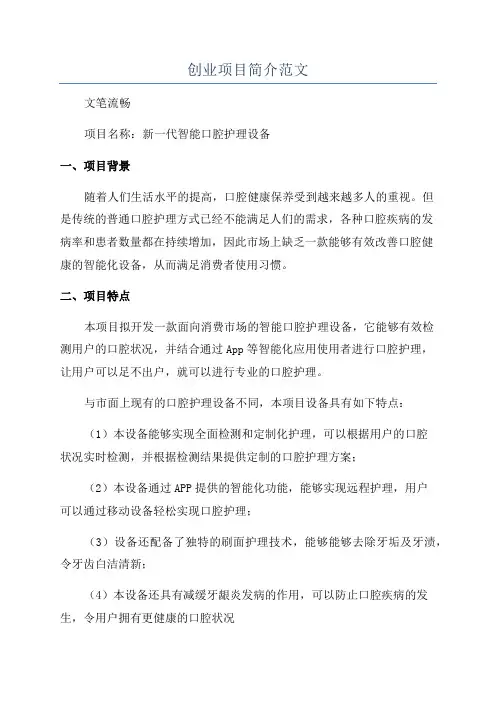 本项目拟开发一款面向消费市场的智能口腔护理设备,它能够有效检