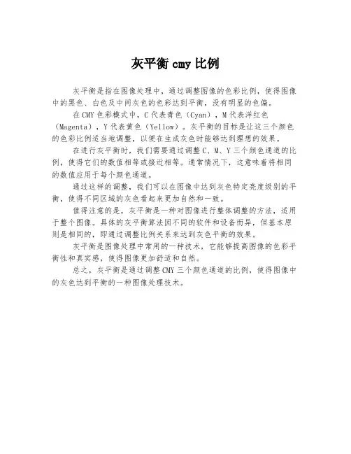 印刷灰平衡是指用三原色油墨,按不同网点比例进行三色叠印,进而印出的不同亮度的灰色(浅灰、中灰、深灰)。