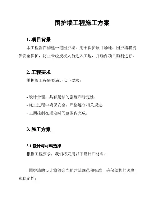 围护墙工程施工方案1. 项目背景本工程旨在修建一道围护墙,用于保护项目场地。