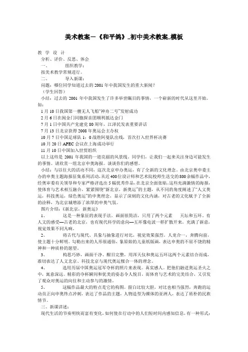 美术教案-《和平鸽》教案概述:本教案以美术课为主题,选材《和平鸽》。