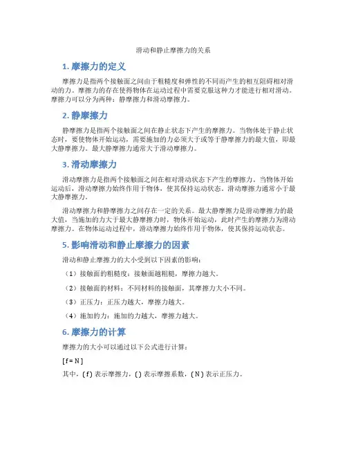滑动摩擦力和静摩擦力的大小关系摩擦力是物理学中的一个基本概念,它是指两个物体在接触的过程中产生的相互阻碍运动的力。