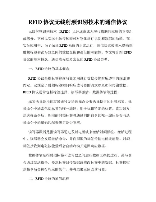 二、RFID协议的通信流程在RFID系统中,标签通常处于被动状态,即只在读写器的主动调度下才会进行数据交换。